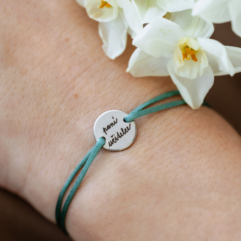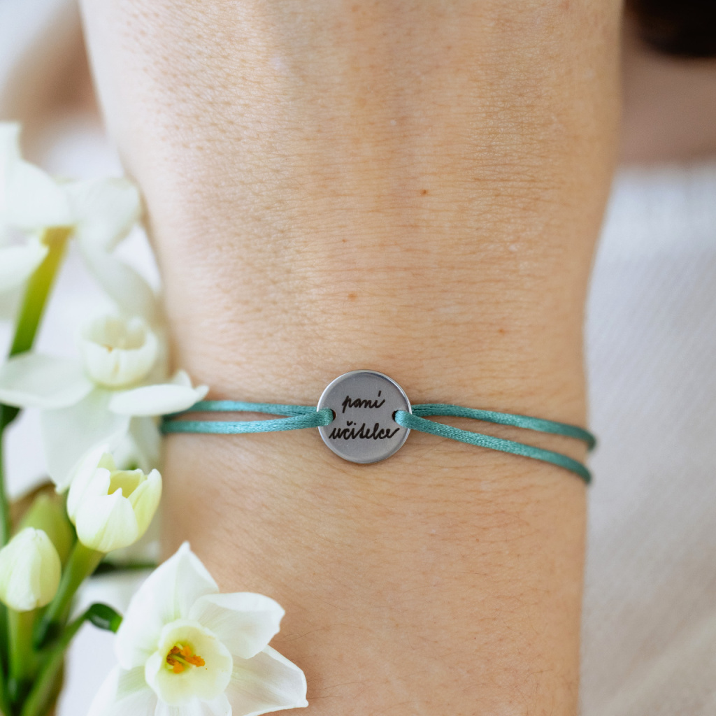 Gravírovaný náramek PANÍ UČITELCE s ocelovým medailonkem (12 mm)