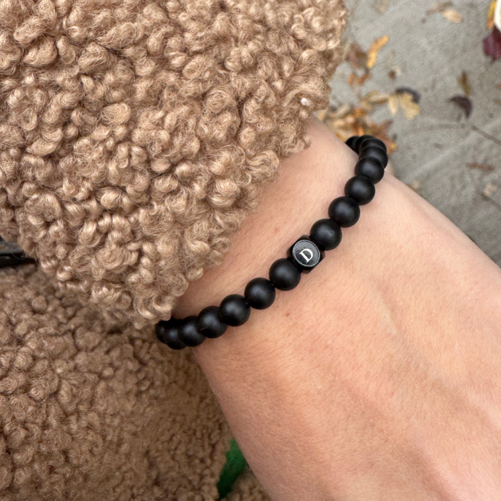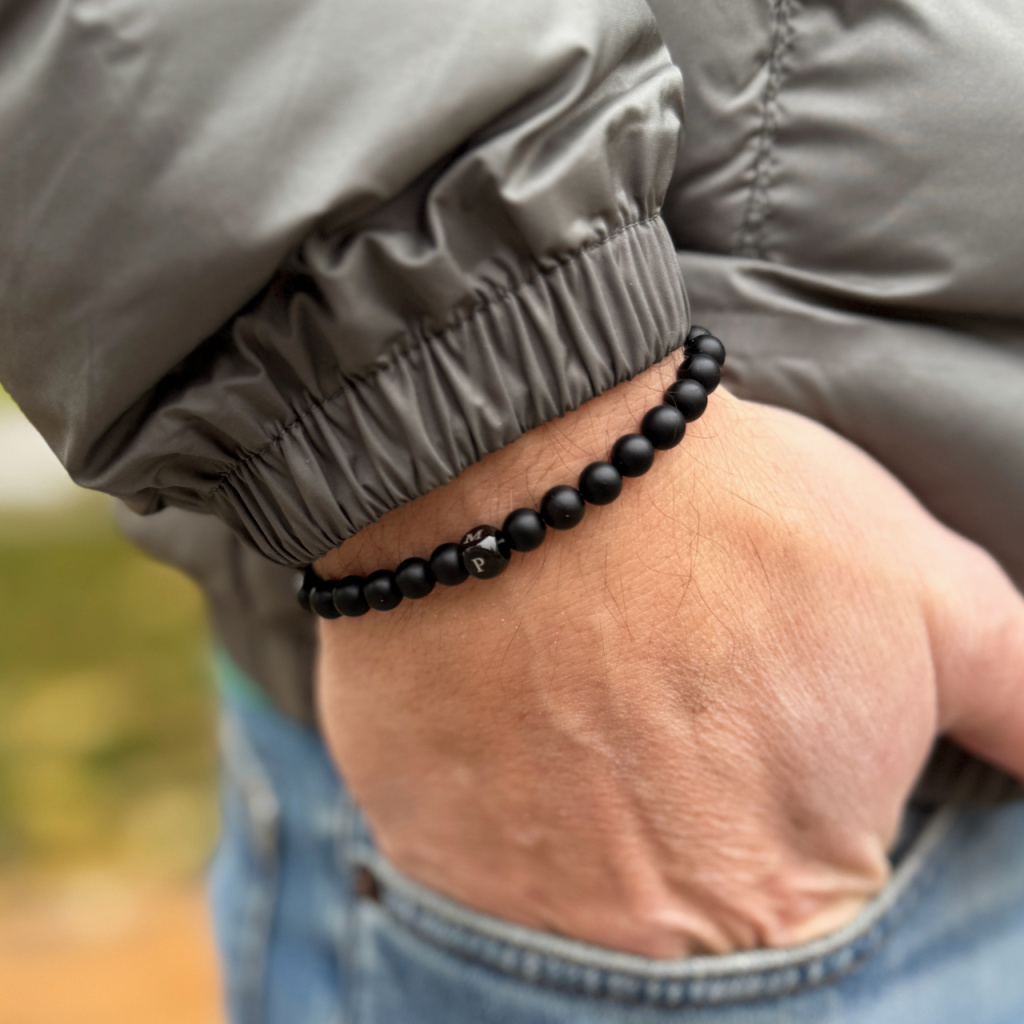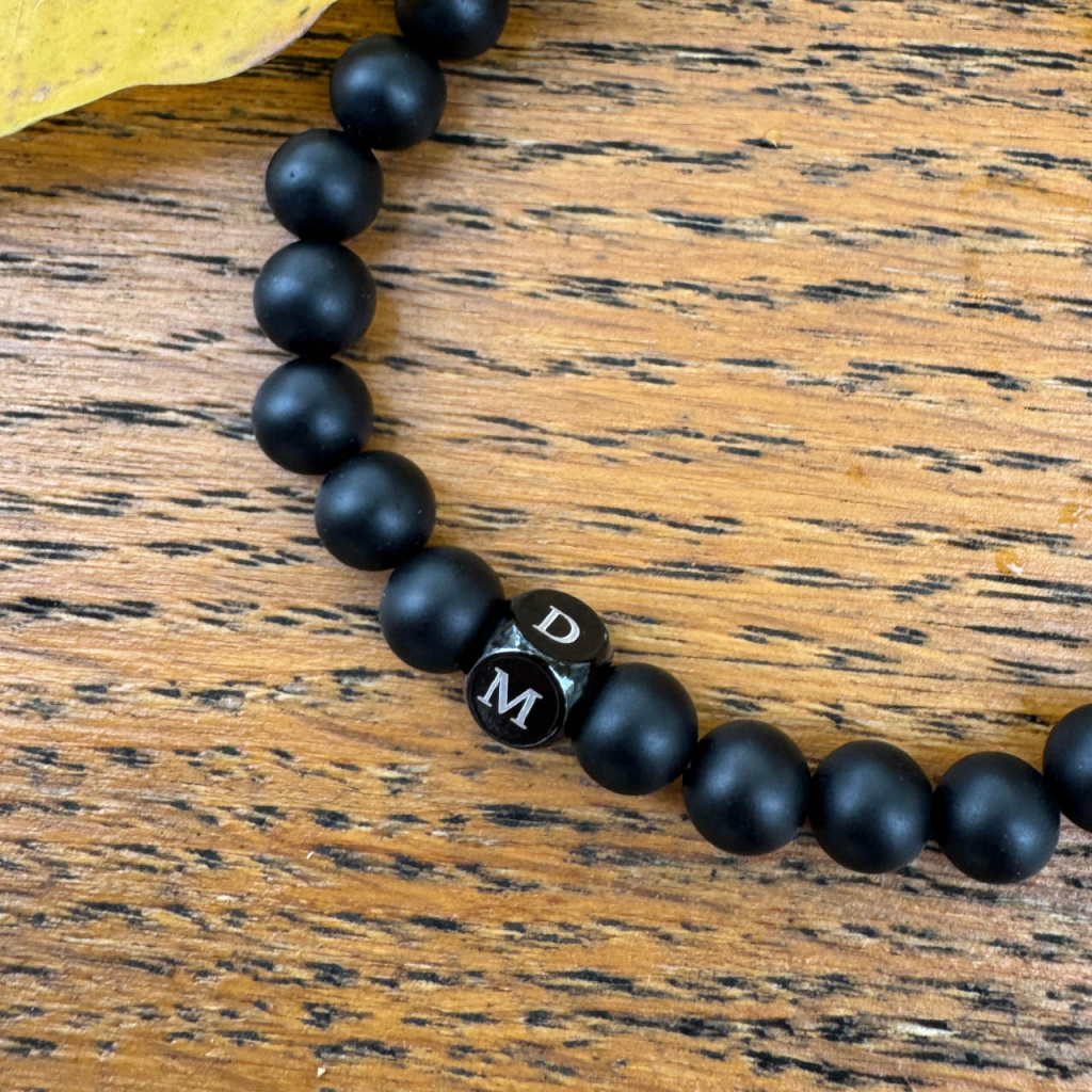 Personalizovaný náramek s onyxem a gravírovanou krychličkou