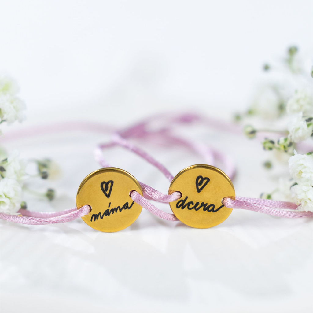 Gravírované náramky MÁMA & DCERA s ocelovým medailonkem (12 mm)
