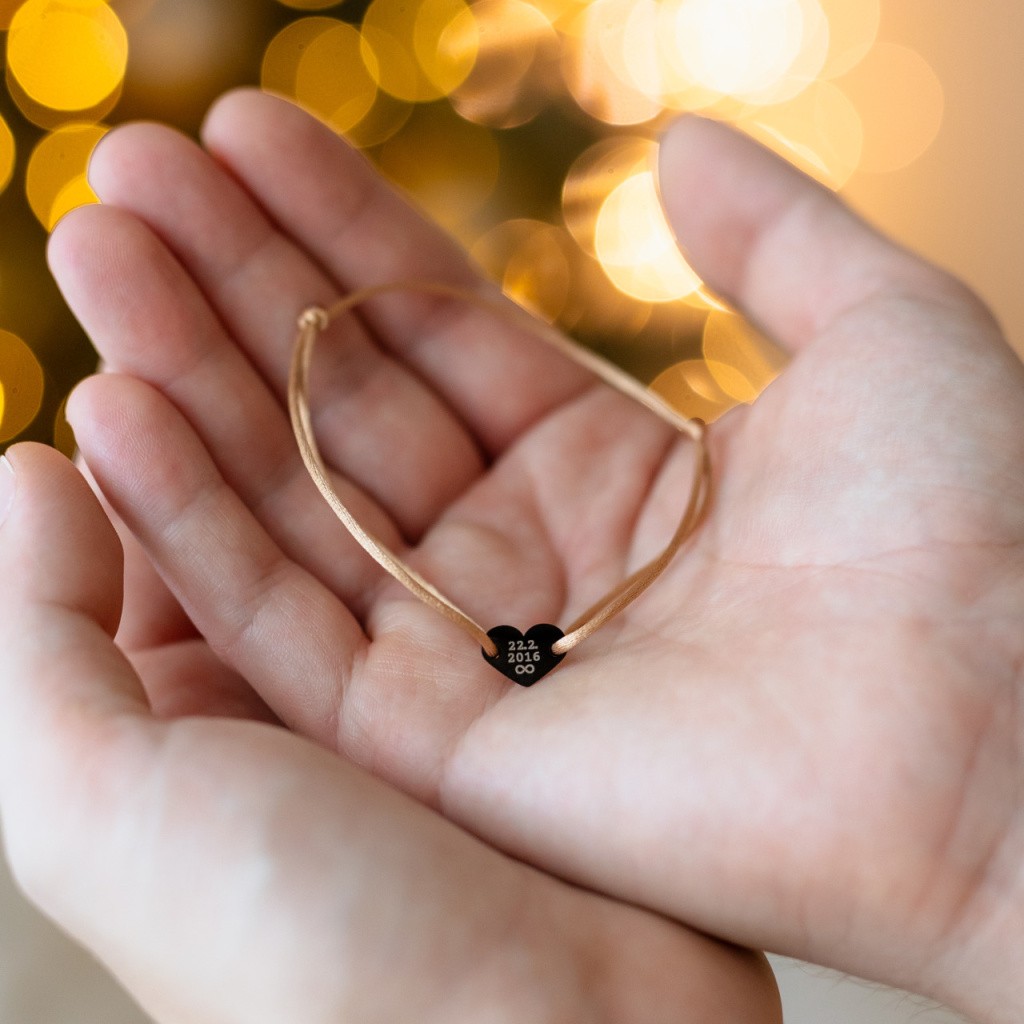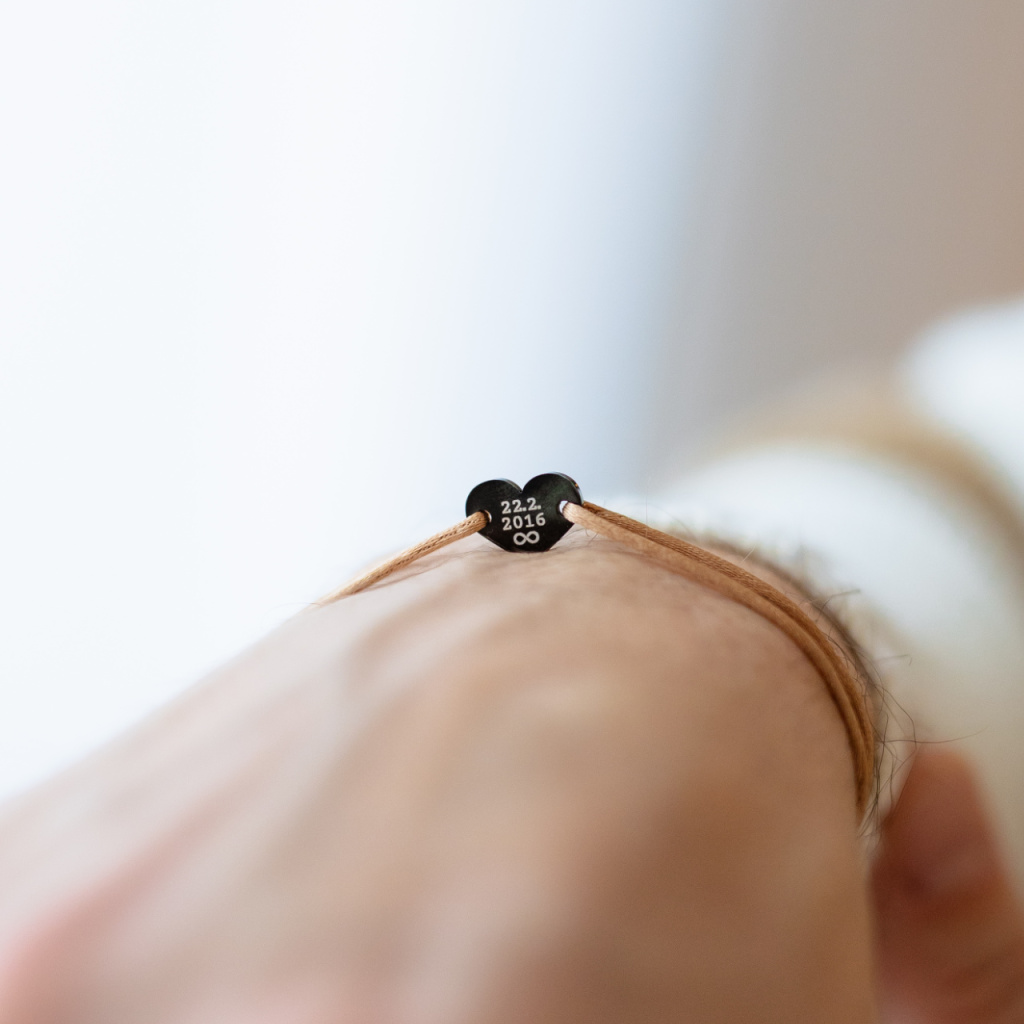 Náramek pro tátu s černým gravírovaným srdcem (12x9 mm)