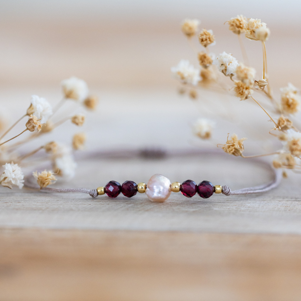 Náramek z přírodních minerálů GRANÁT & PERLA