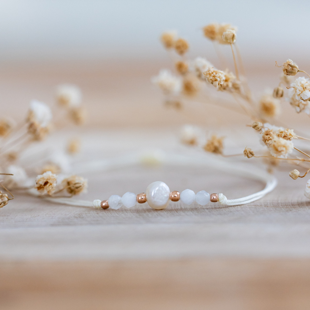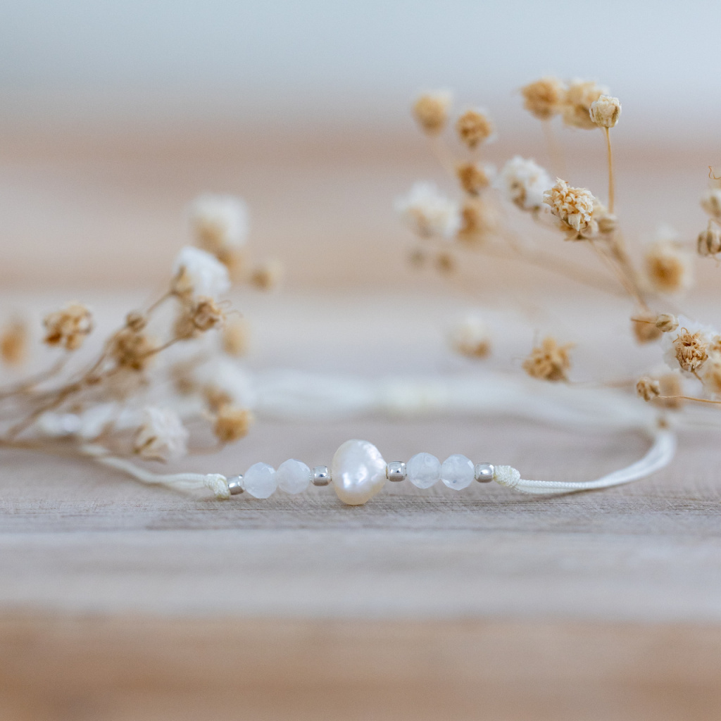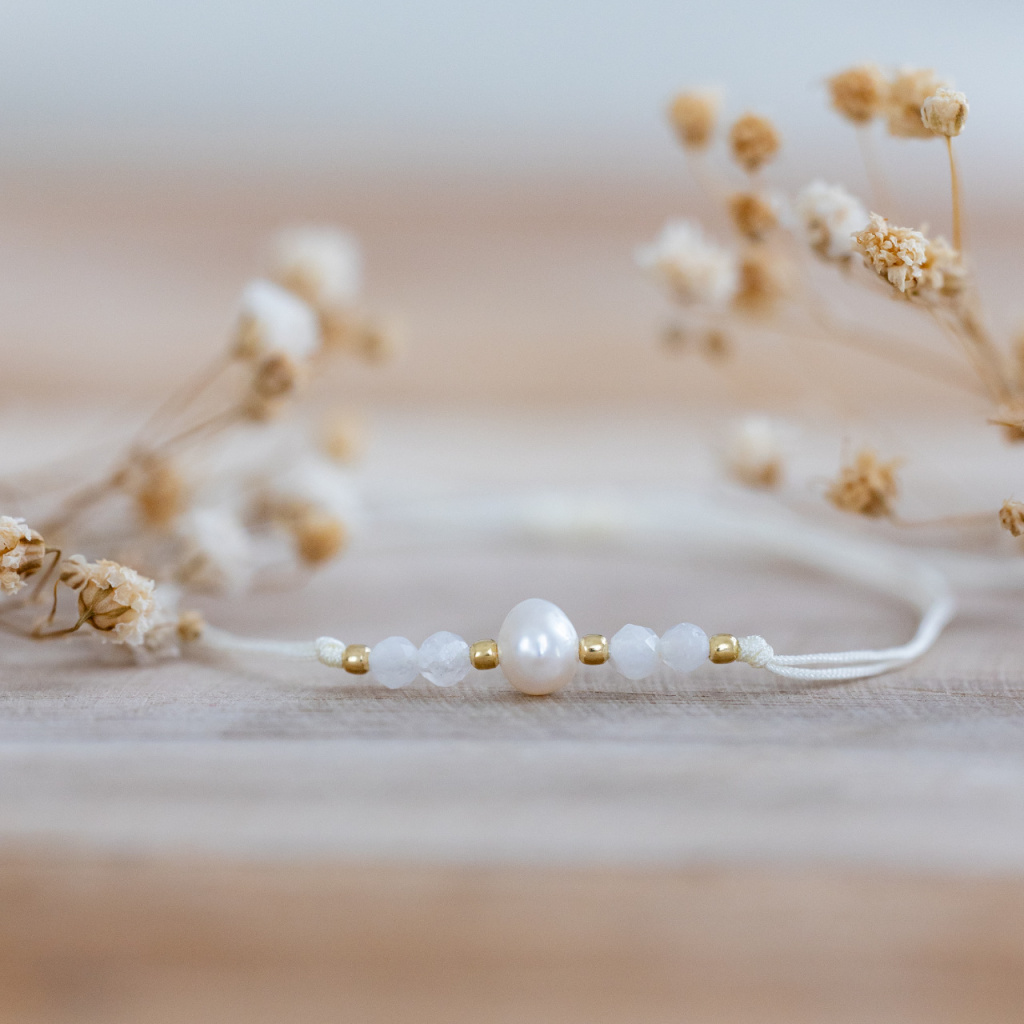 Náramek z přírodních minerálů MĚSÍČNÍ KÁMEN & PERLA