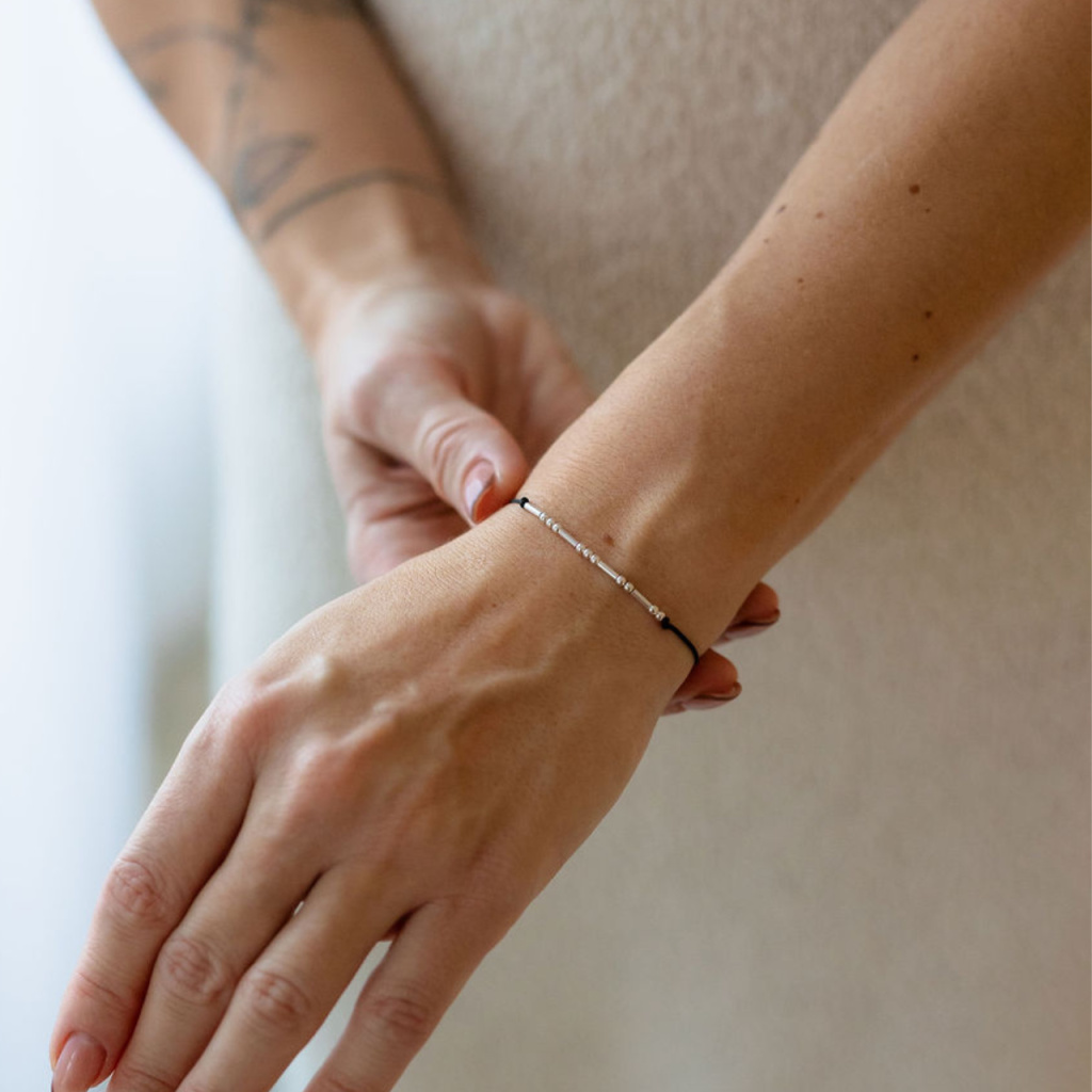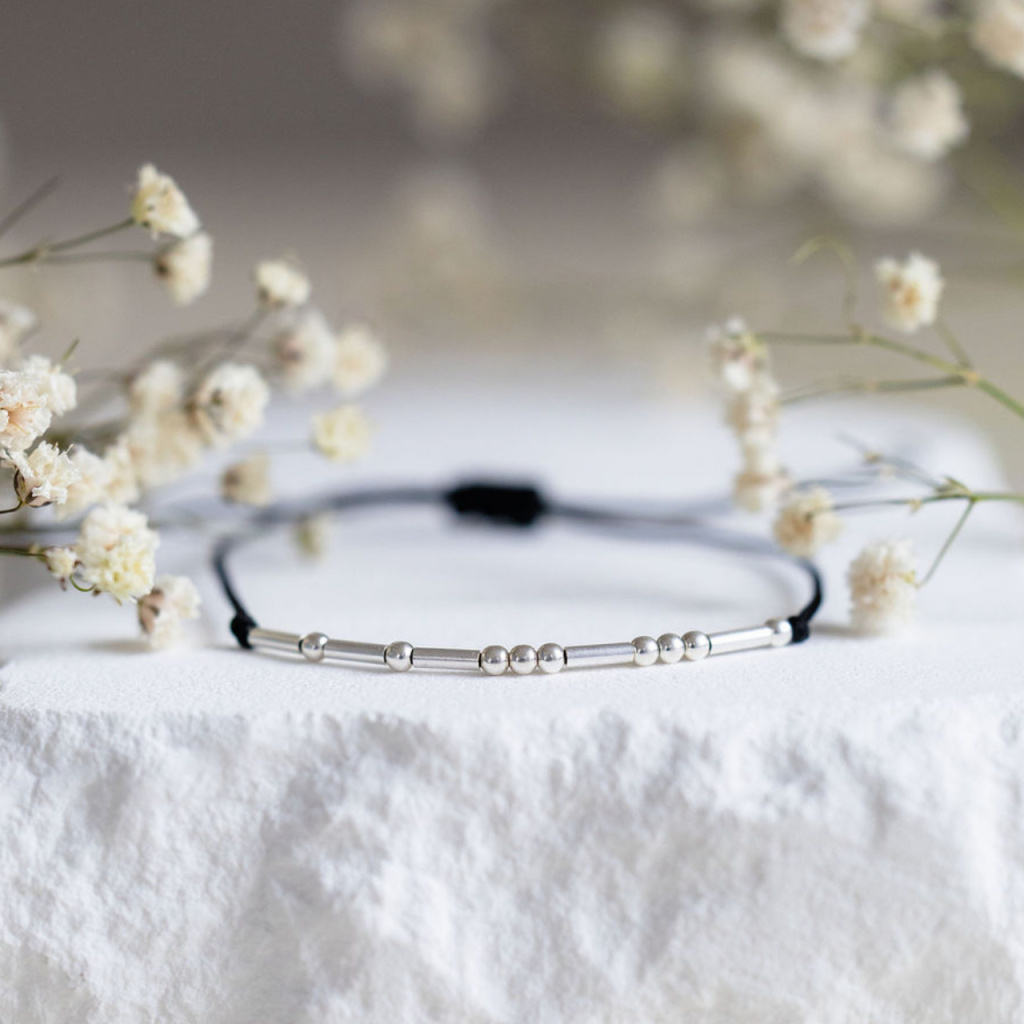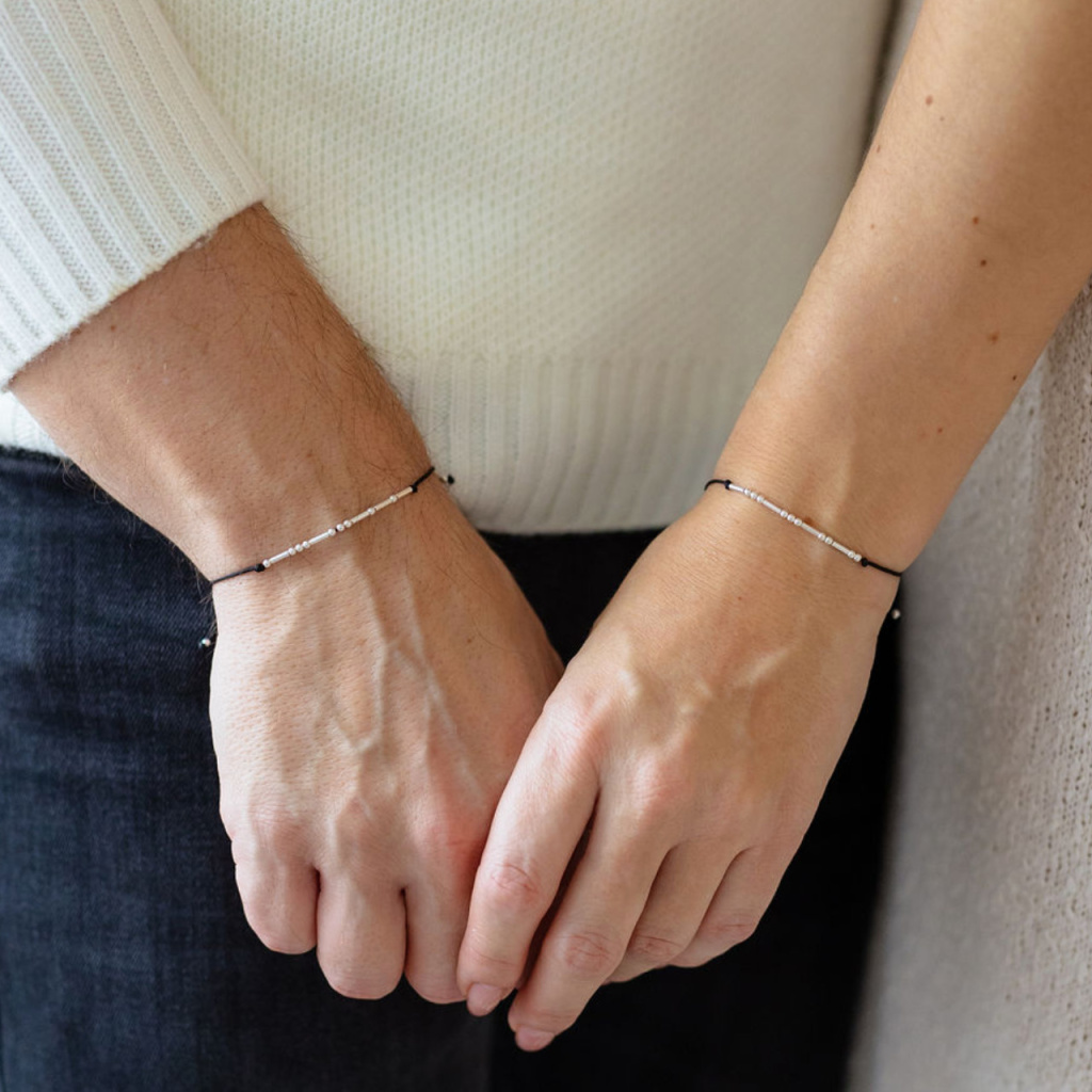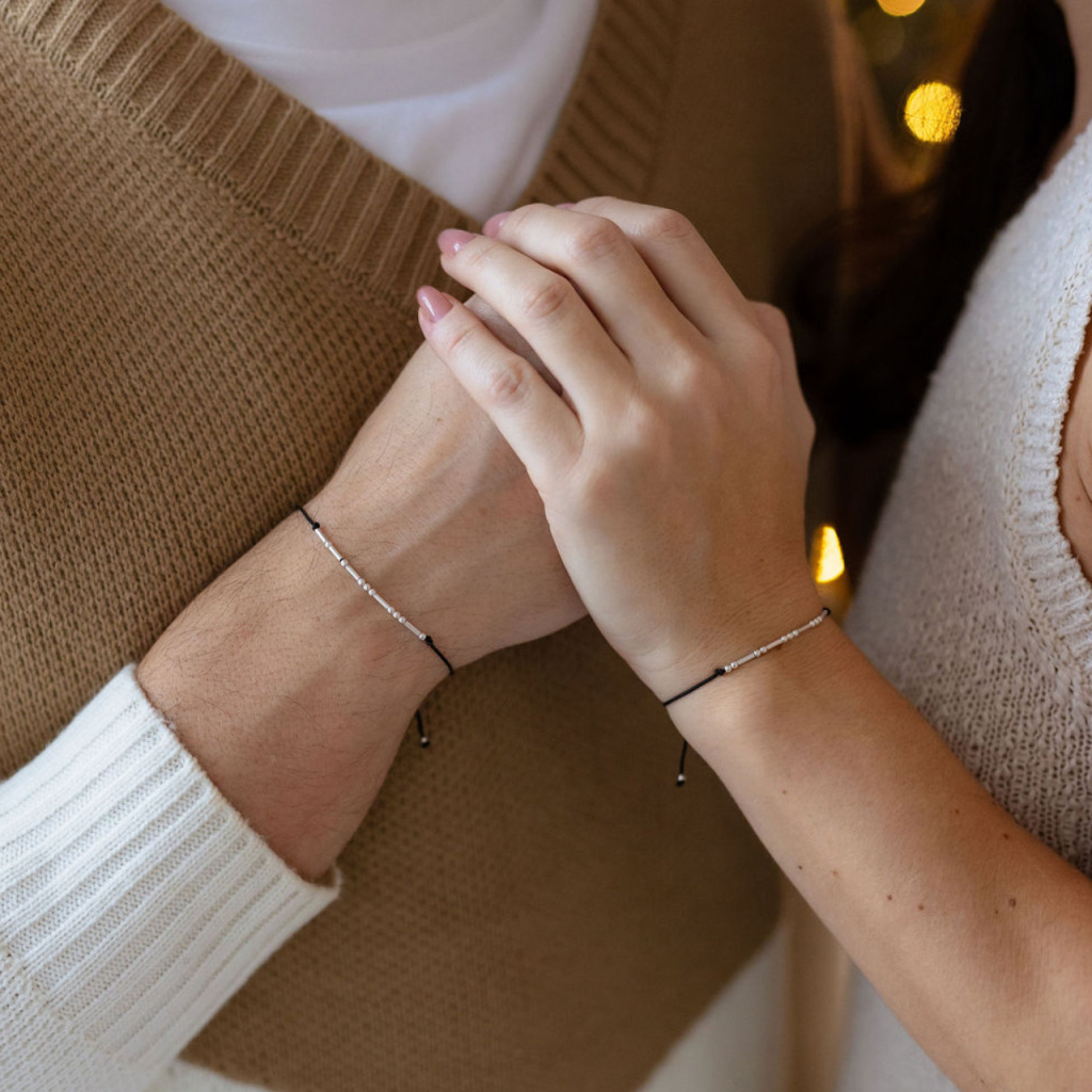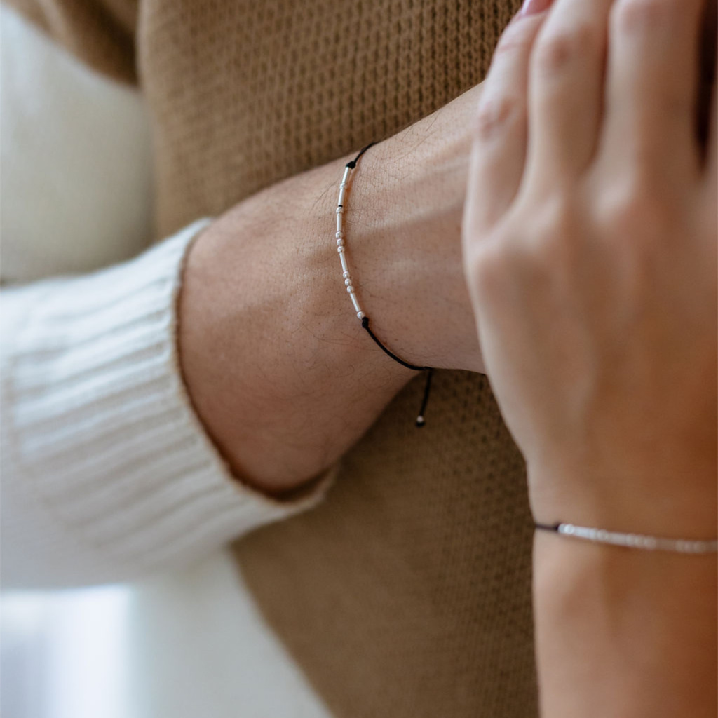 Párové náramky s Morseovkou na šňůrce (stříbro 925)