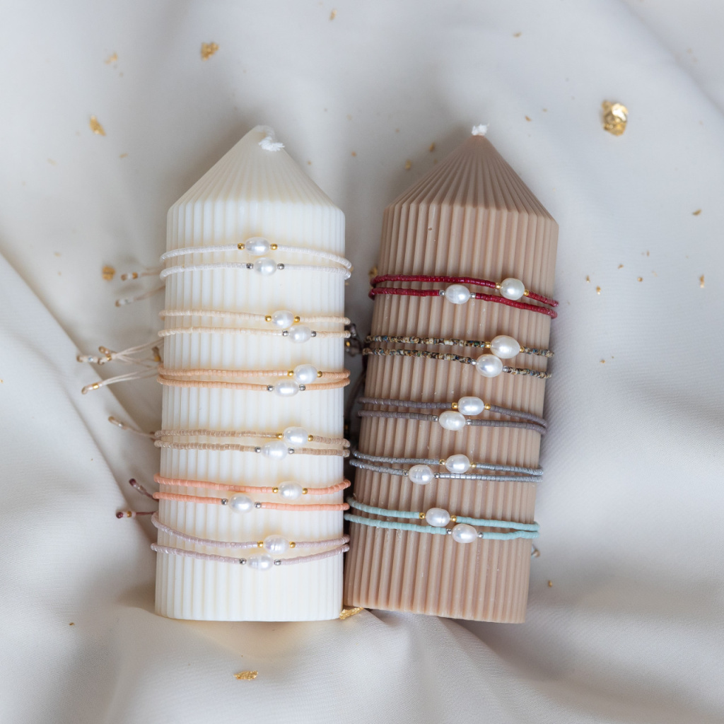 Použité materiály: Miyuki korálky + sladkovodní perla + nylonový provázek (tl. 0.5 mm)