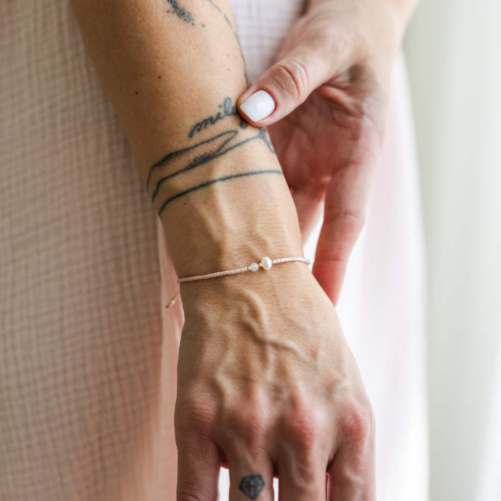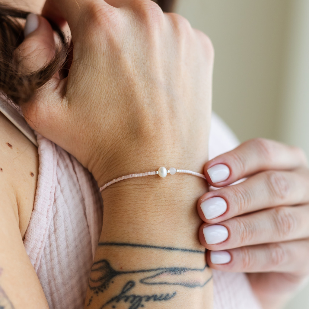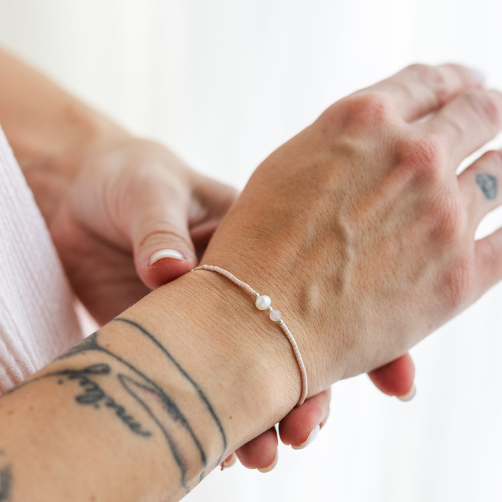 Náramek s růženínem a perlou
