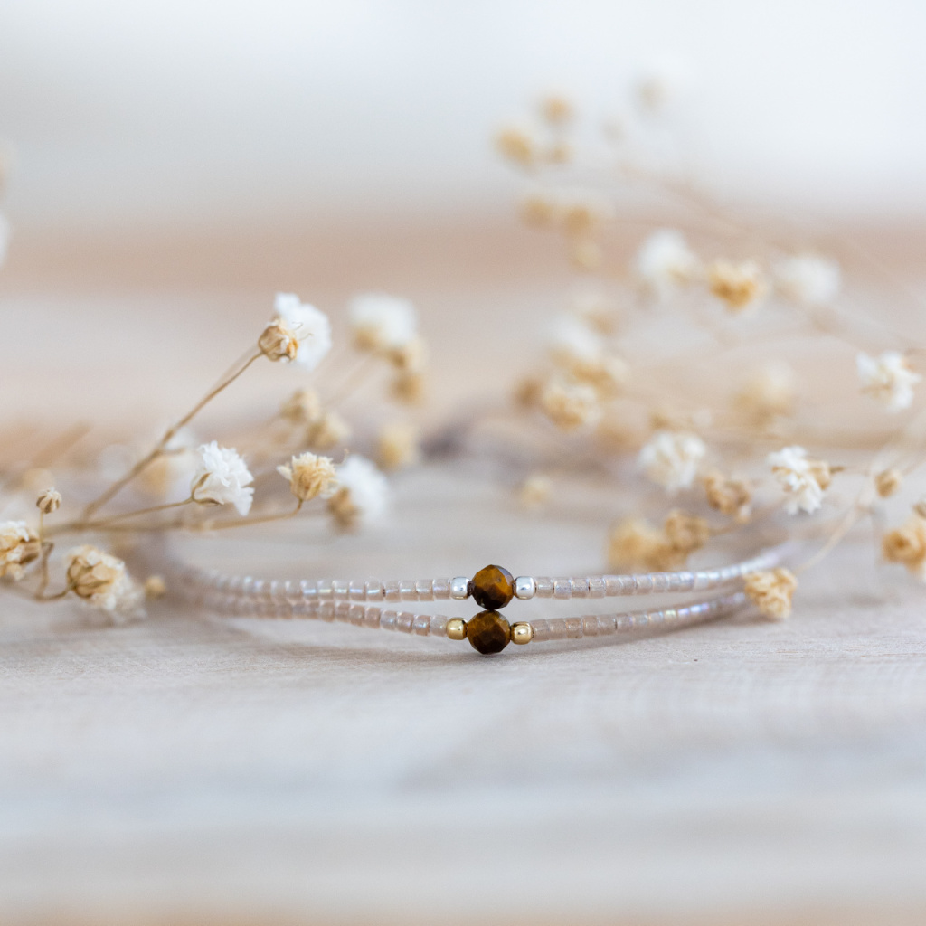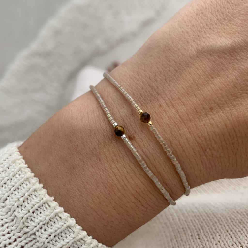Použité materiály: Miyuki korálky + tygří oko + nylonový provázek (drhané utahování s volnými konci)